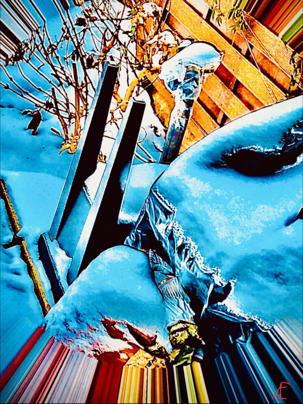Die Natur inspiriert mich auch immer wieder zu meiner Fotokunst. Diese Aufnahme, die mit Hilfe eines Lichttunnels entstanden ist, nahm ich im Januar 2024 auf. Mich faszinierte dabei eine andere, verfremdete und farbige Darstellung einer Schneelandschaft. Eine andere Perspektive einzunehmen, als das normalweise übliche Weiß einer perfekten Landschaft im Winter. Die Faszination liegt im Unorthodoxen des Motives und der ungewöhnlichen Farbgebung.