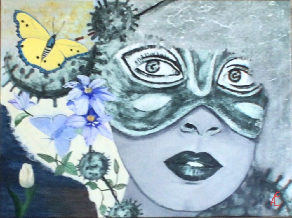 Die Zeit der Pandemie habe ich bildlich verarbeitet. In dem ich mehrere Aquarelle zu dem Thema gemalt habe, unter anderem die „Lady Corona“. Für die anstehende Ausstellung Dreams habe ich den Traum, dass wir uns wieder mehr auf die Schönheit der Natur besinnen und das Leben genießen sollten, anstatt sich in der Angst vor der Zukunft einzumauern. Deshalb habe ich mein Aquarell digital bearbeitet und auf Leinwand drucken lassen. Und das Werk mit Acrylfarben weiter gemalt. (Schmetterlinge und Blumen etc.)