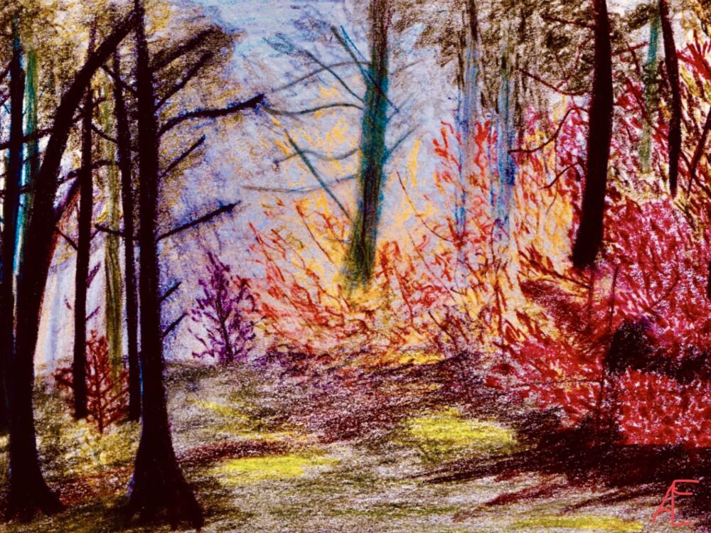 Ich mag es im Herbst in der Natur zu sein. Die wechselnden Stimmungen die das Licht und das Wetter erzeugen. Die wundervolle Pracht von bunten Blättern, den Duft von feuchter Erde und Laub, die Geräusche von raschelndem Wind und das Gefühl von Ruhe, das sich aus der Natur ergibt. Meine Empfindungen nach einem Spaziergang bringe ich dann zu Papier.