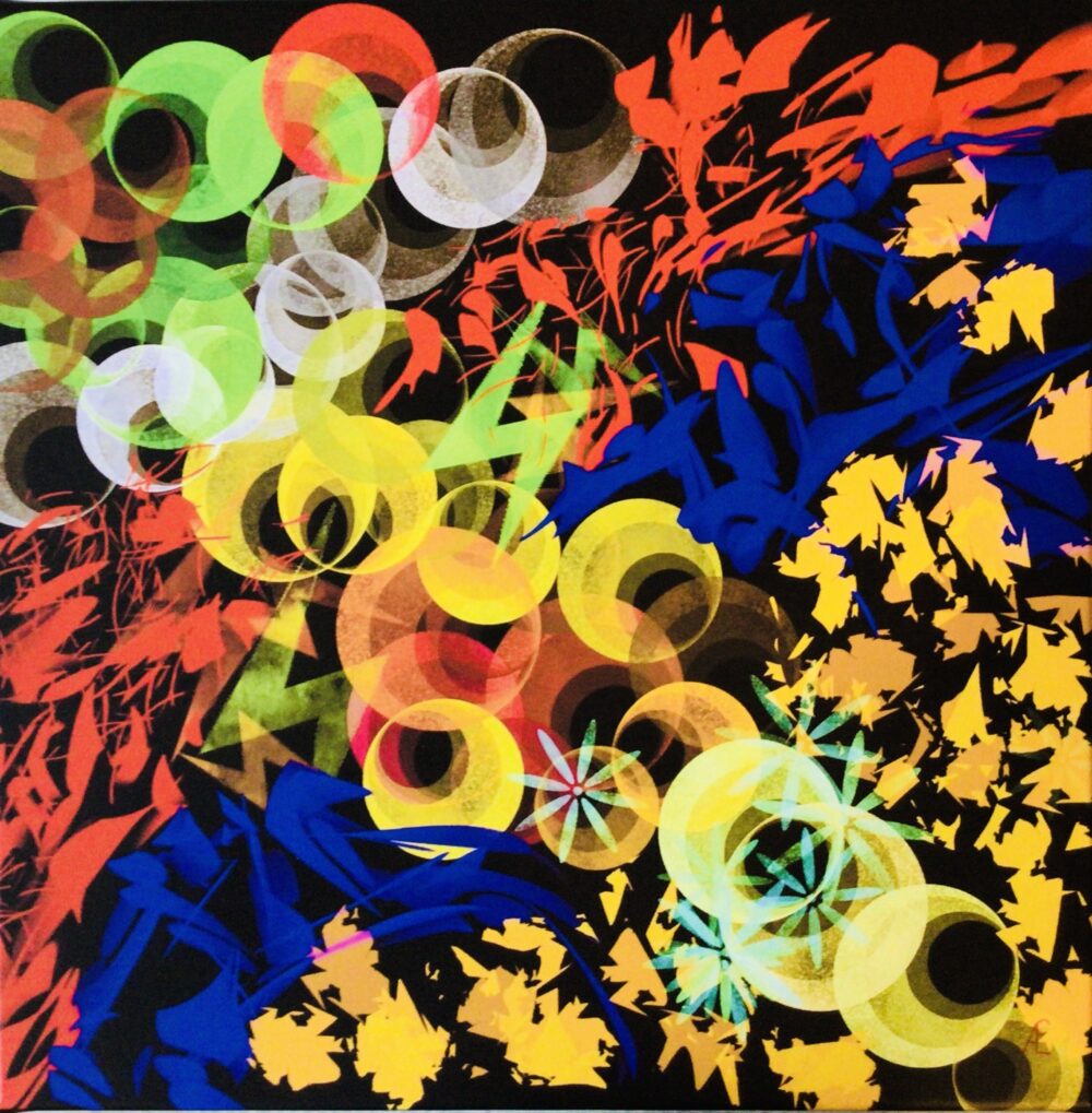 Das dritte Bild aus diesem von mir digital gemalten Zyklus stellt den Sommer dar und zeigt dies in kräftigen und strahlenden Farben, die zum Teil an Blätter oder Sonnenstrahlen erinnern. Aber gerade zu Beginn des Sommers gibt es manchmal noch Kälteeinbrüche, was durch einzelne Schneeflocken angedeutet wird. Jedes Bild der Serie enthält eine Farbe der vorherigen und der nachfolgenden Jahreszeit. Es kann einzeln aber auch als Gesamtzyklus zur Hängung gebracht werden. Die gesamte Komposition wirkt lebendig, atmosphärisch und zugleich harmonisch abstrahiert.